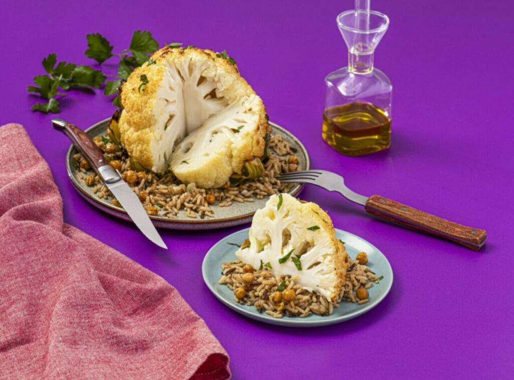 In addition to a great base like rice, a key to keeping any meatless meal filling is to include an alternative protein. A common concern in a meatless diet is a lack of protein, but the good news is that there is an abundance of protein-rich, plant-based meat substitutes available! This classic Black Bean Veggie Burger replaces ground beef with black beans, an excellent source of protein, while this Oven Roasted Cauliflower dish incorporates protein-rich chickpeas to keep the dish filling and add a satisfying crunch. From black beans and chickpeas to tofu and lentils, there’s no shortage of protein sources you can add to your next meatless meal.